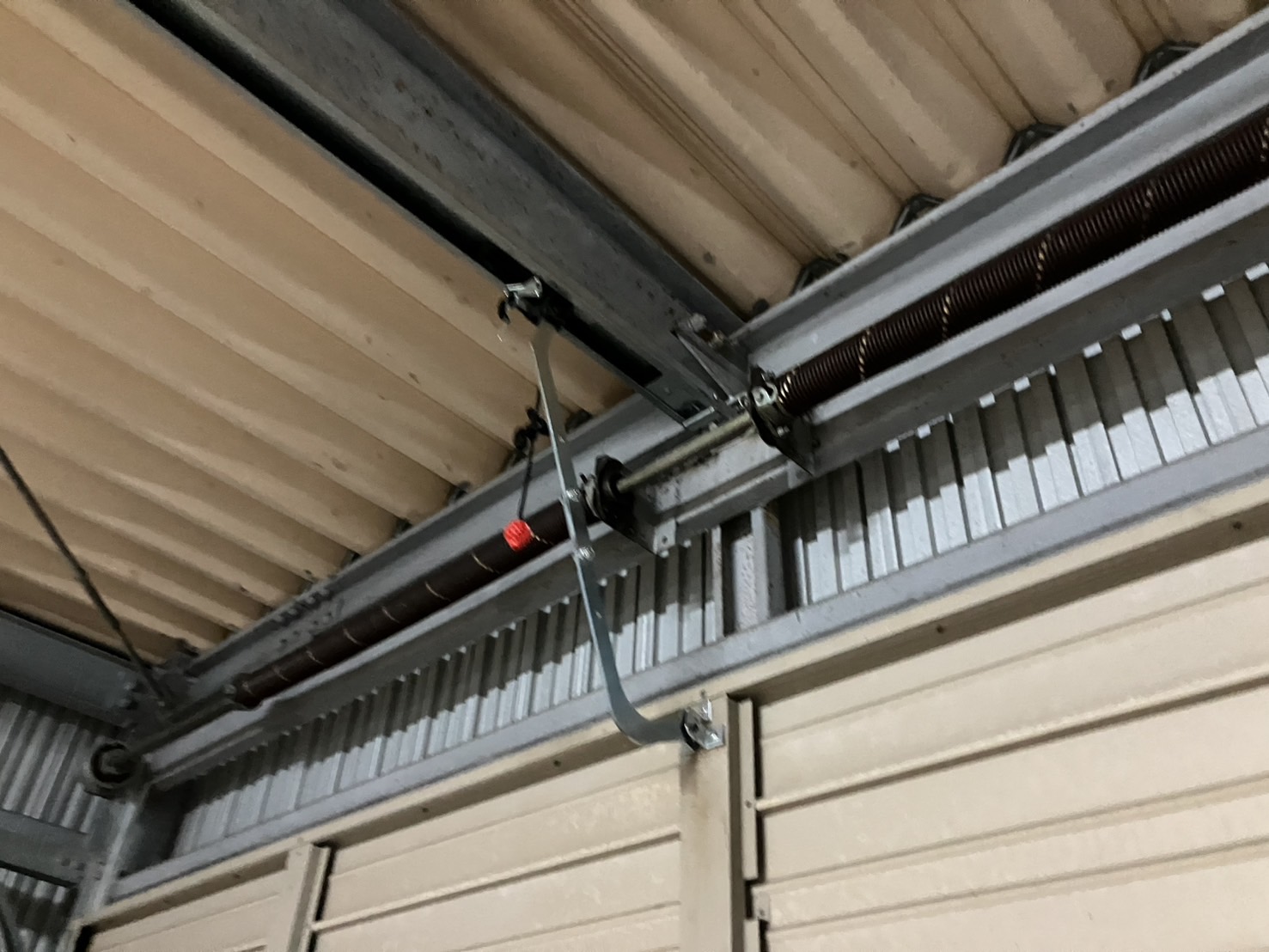 故障の原因は片側のバネの破損でした。新しいバネが届くまでの間何とか開閉できるようにと危険な応急処置もしたりと多大な手間がかかりました。幸いお客様が理解のある方でスムーズに作業ができ無事に本修理もできて良かったです。