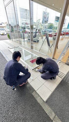 自動ドアガラス割れ替えを行いました。