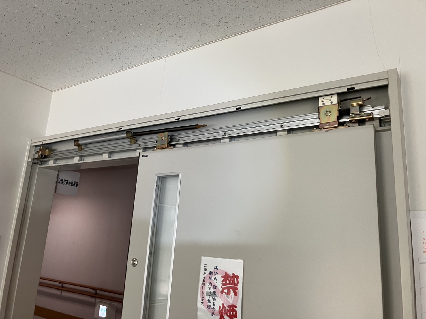羽島市 引き戸修理 介護施設内の引き戸の修理をしました。 この手の製品は非常に種類が多く、製品を検索するだけでも時間がかかります。引き戸は故障も多いので補修部品が存在するうちに修理をお勧めします。