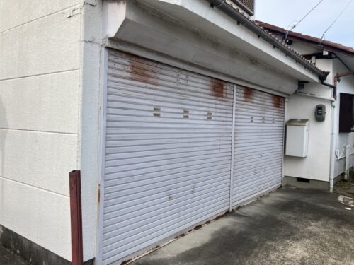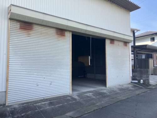 朽ち果てた手動シャッターを撤去して電動シャッターを設置しました。