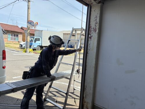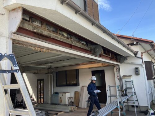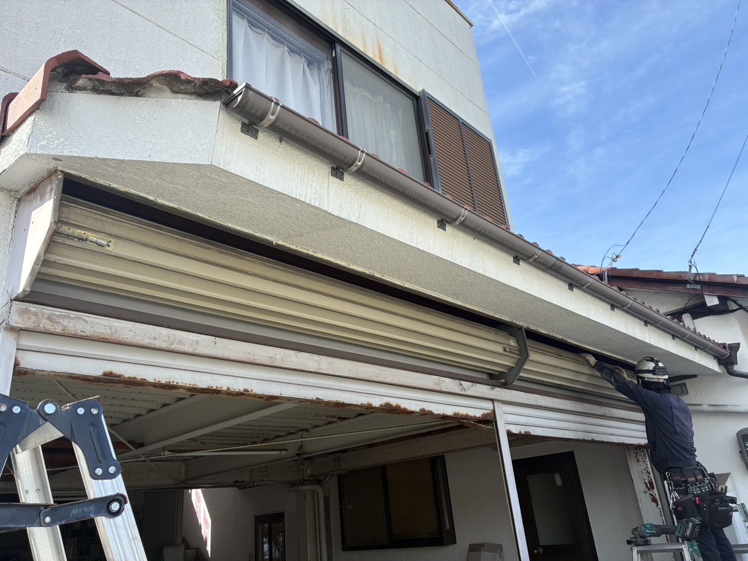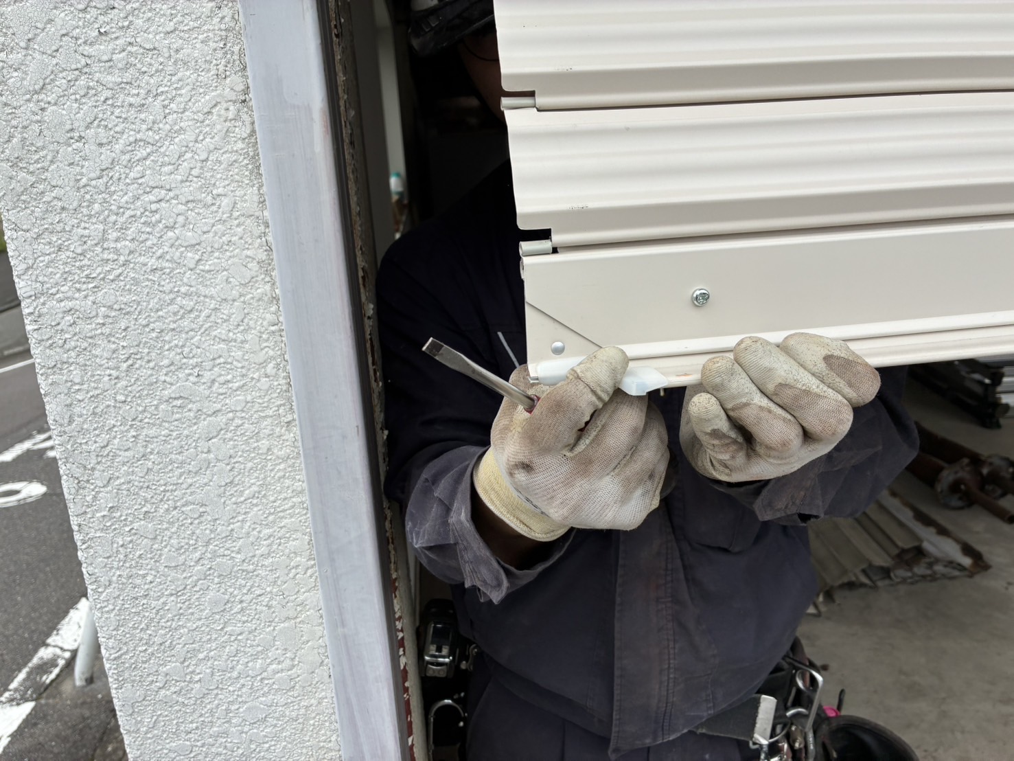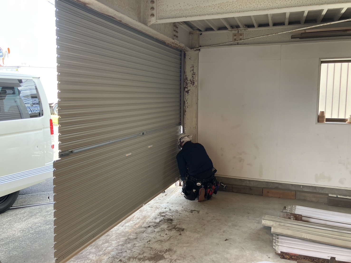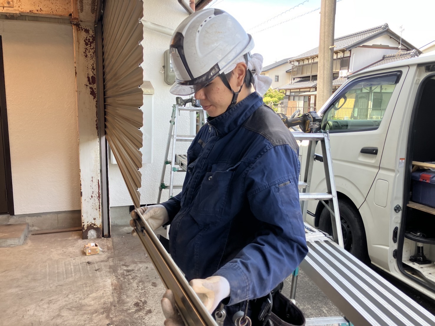 各務原市シャッター修理では、2連シャッターのスプリングシャフト・スラット・座板の交換工事をさせていただきました。