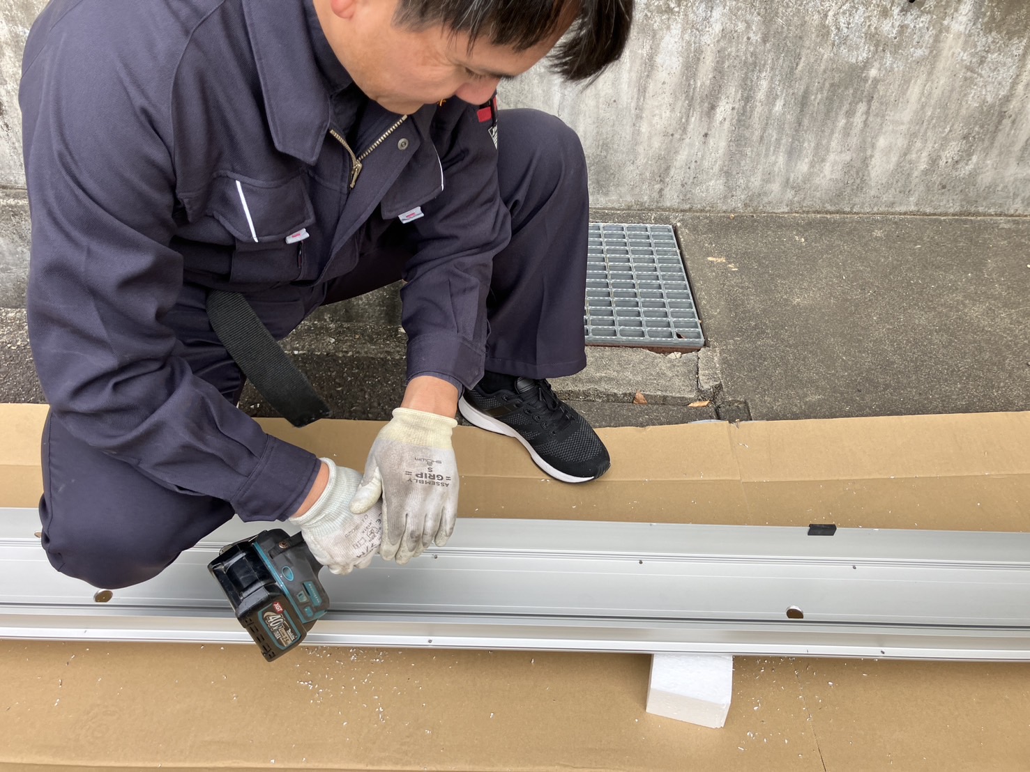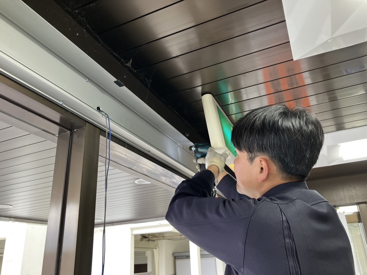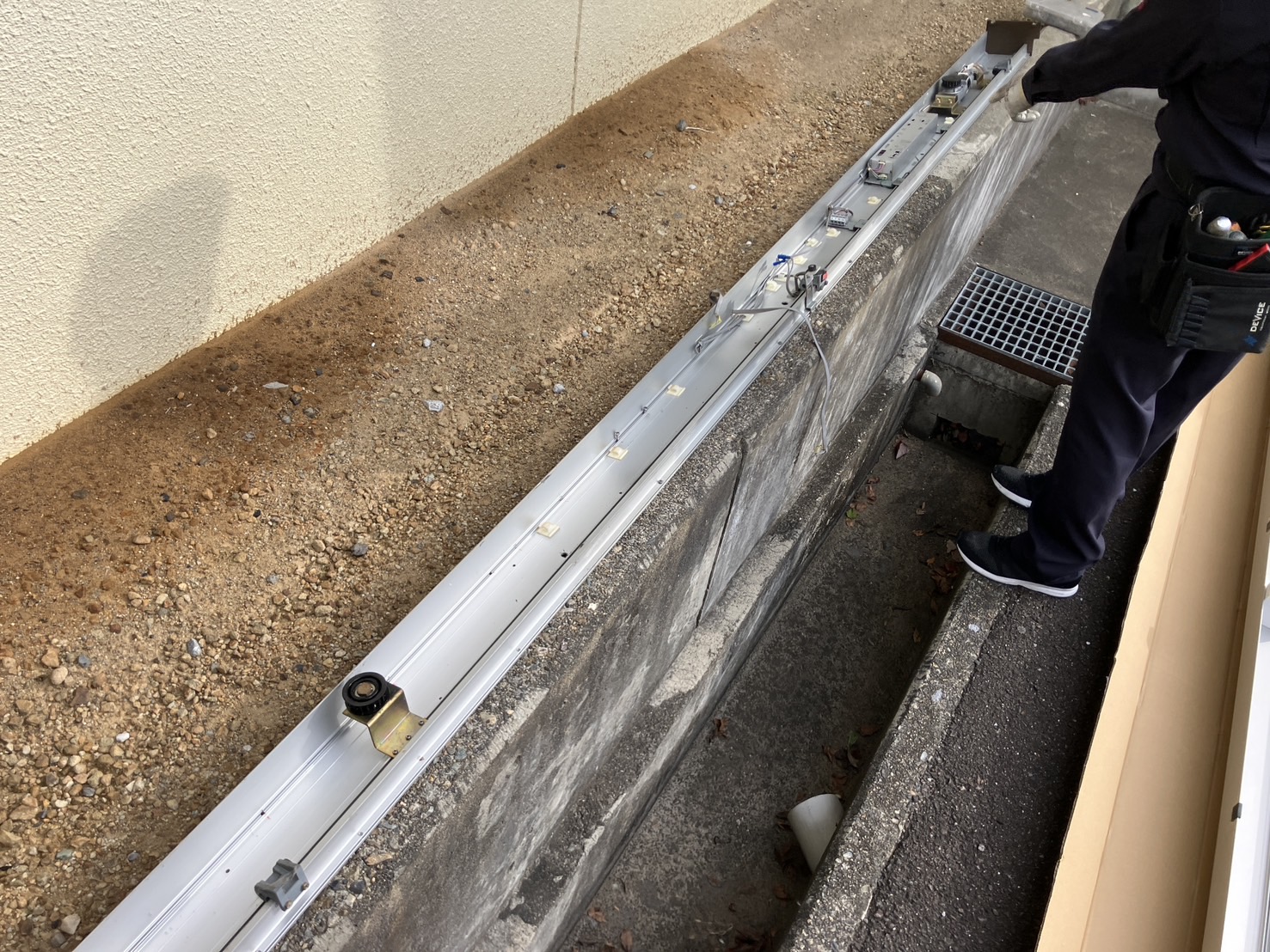 今回の各務原市自動ドア修理の作業内容として、ハンガーレール取替作業を行いました。