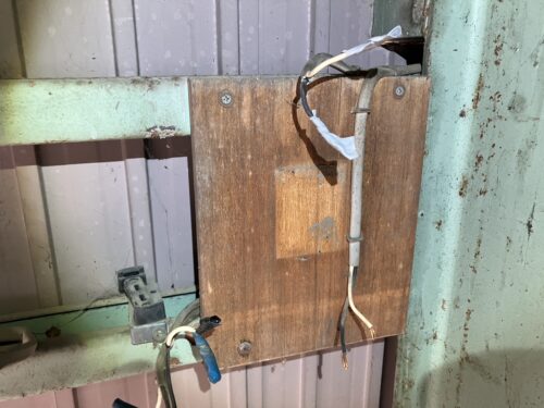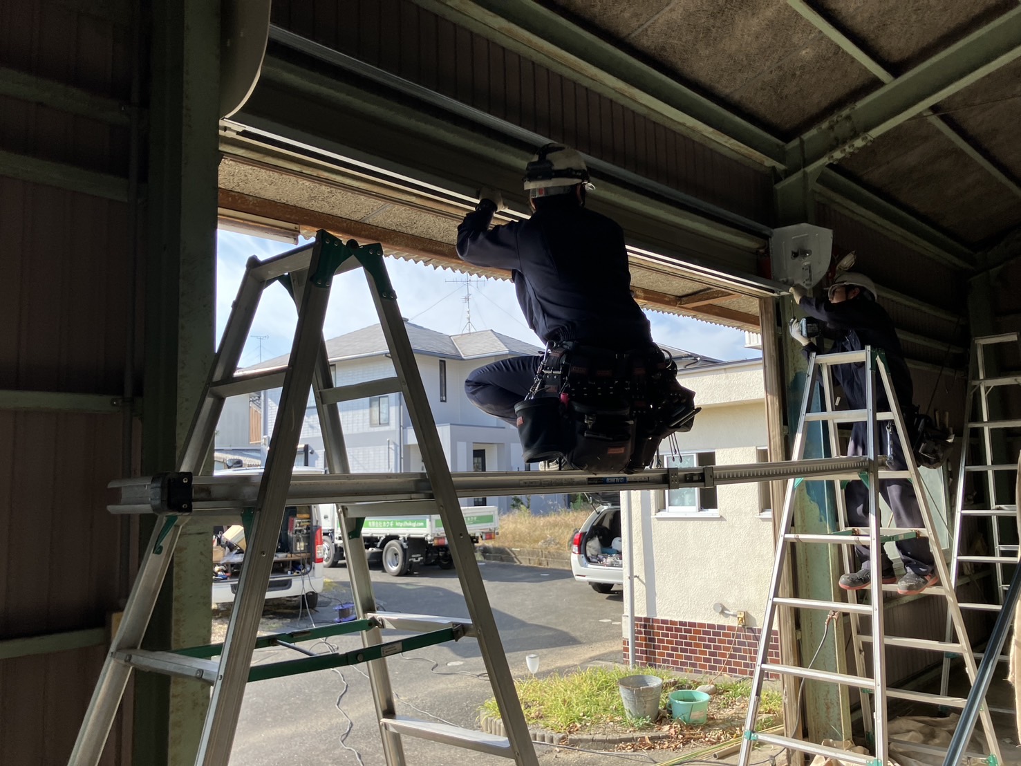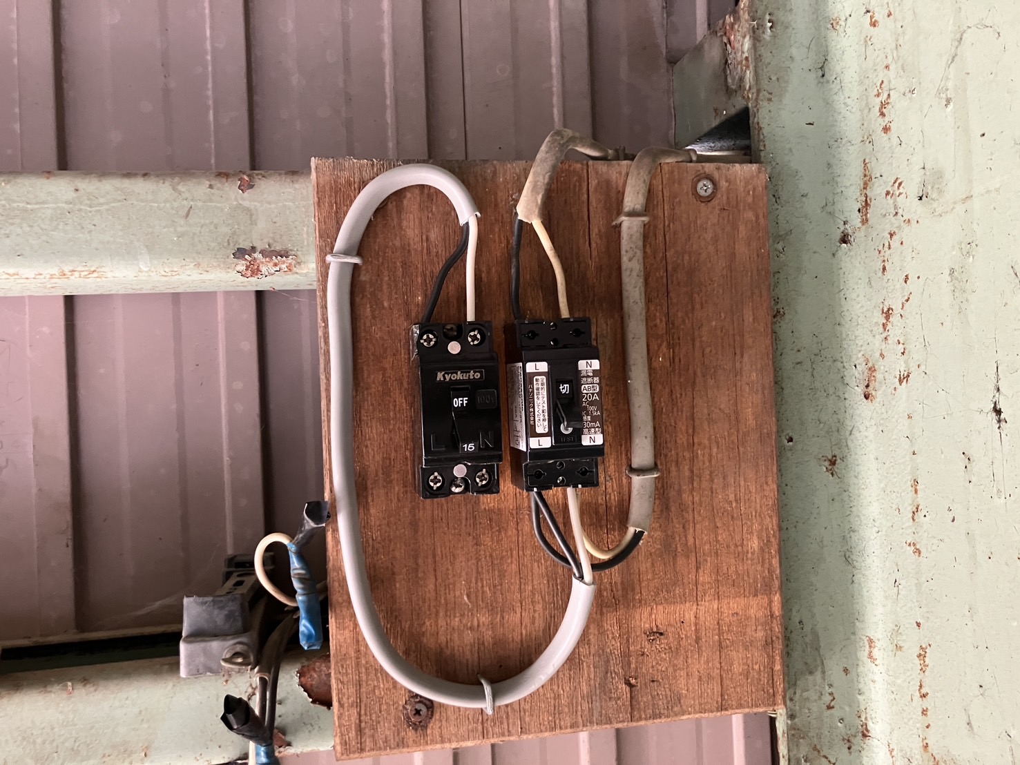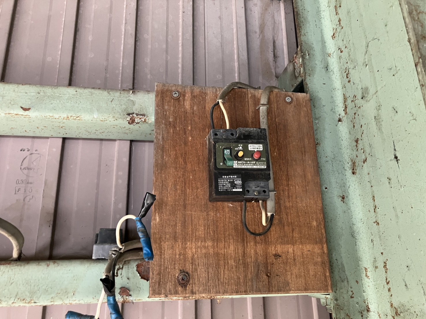 安八町電動シャッター取付工事では、シャッター専用小ブレーカーの設置の電気工事も含めてさせていただきました。