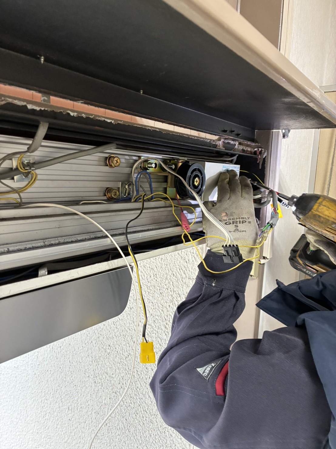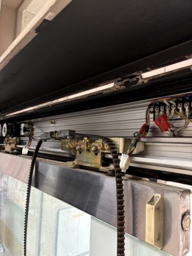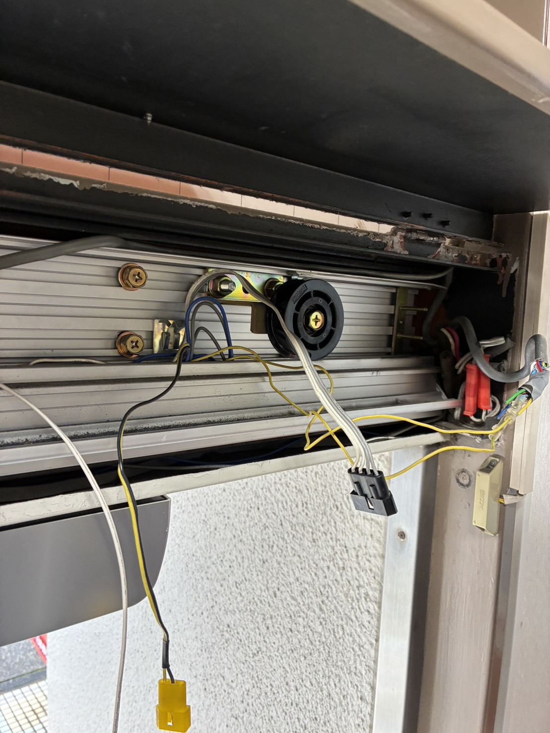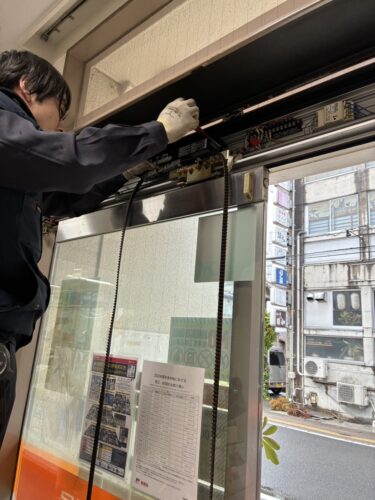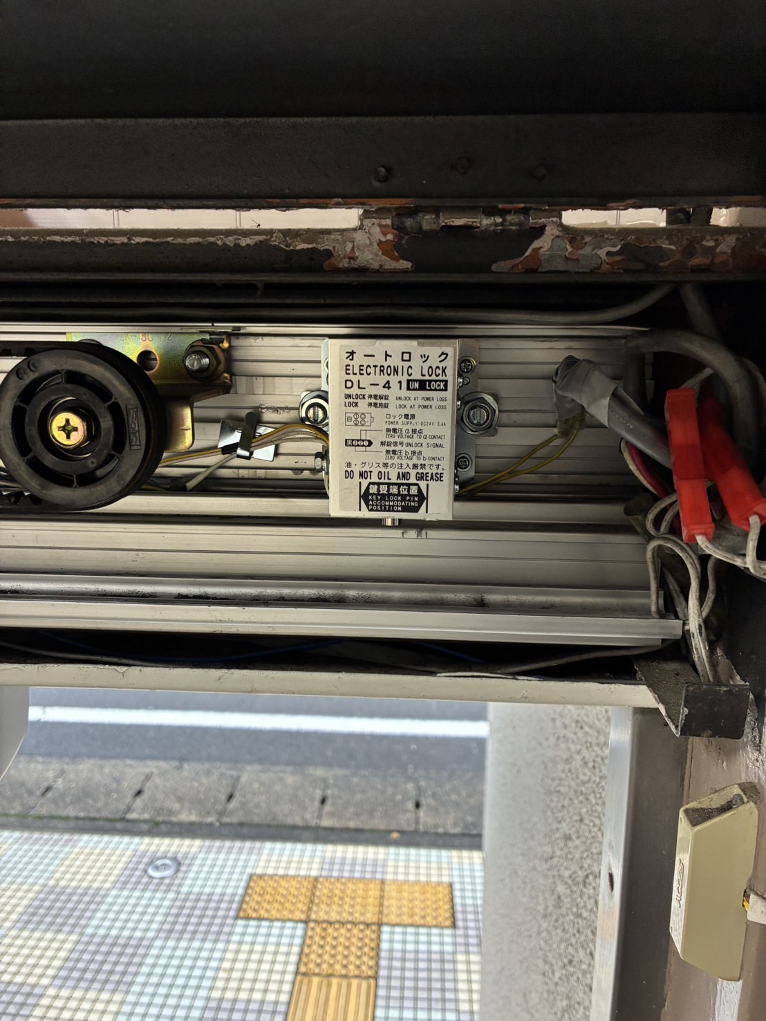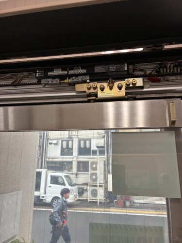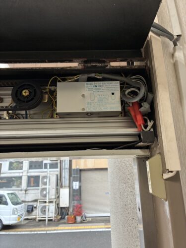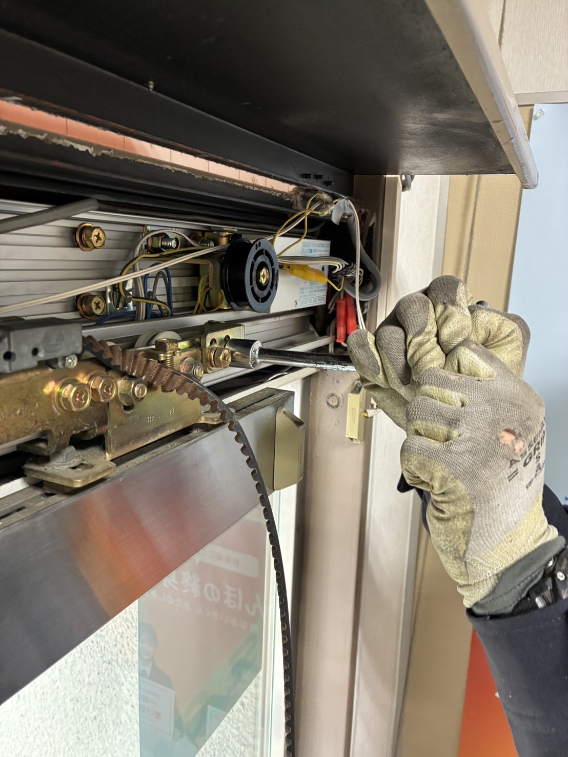岐阜市自動ドア修理での作業内容として、制御装置(コントローラー)、電気錠、鍵受けの取替工事をさせていただきました。