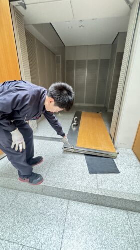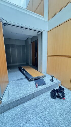 この図書館の扉は、非常に重い扉でしたので、扉を外したりする作業にとても手間がかかりました・・・。