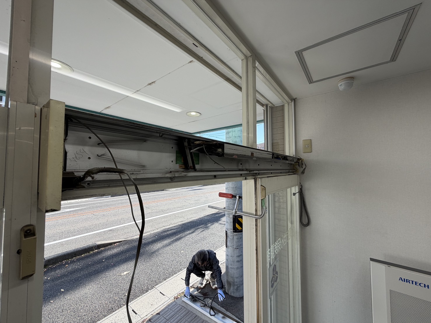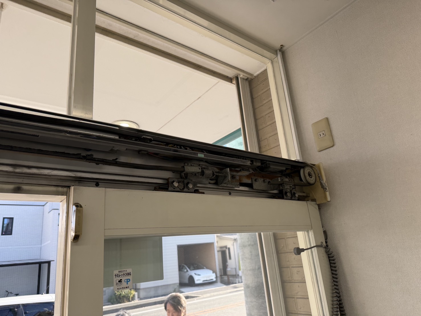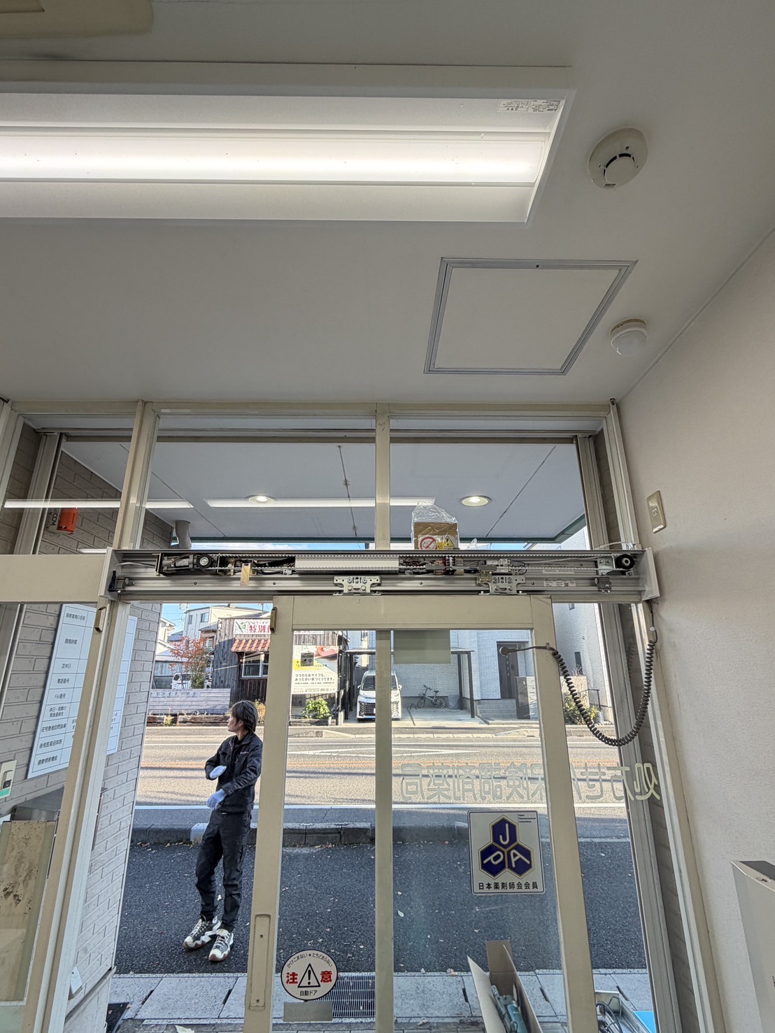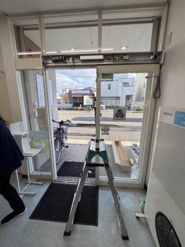 春日井市自動ドア修理の作業内容として、自動ドア装置取替工事をさせていただきました。