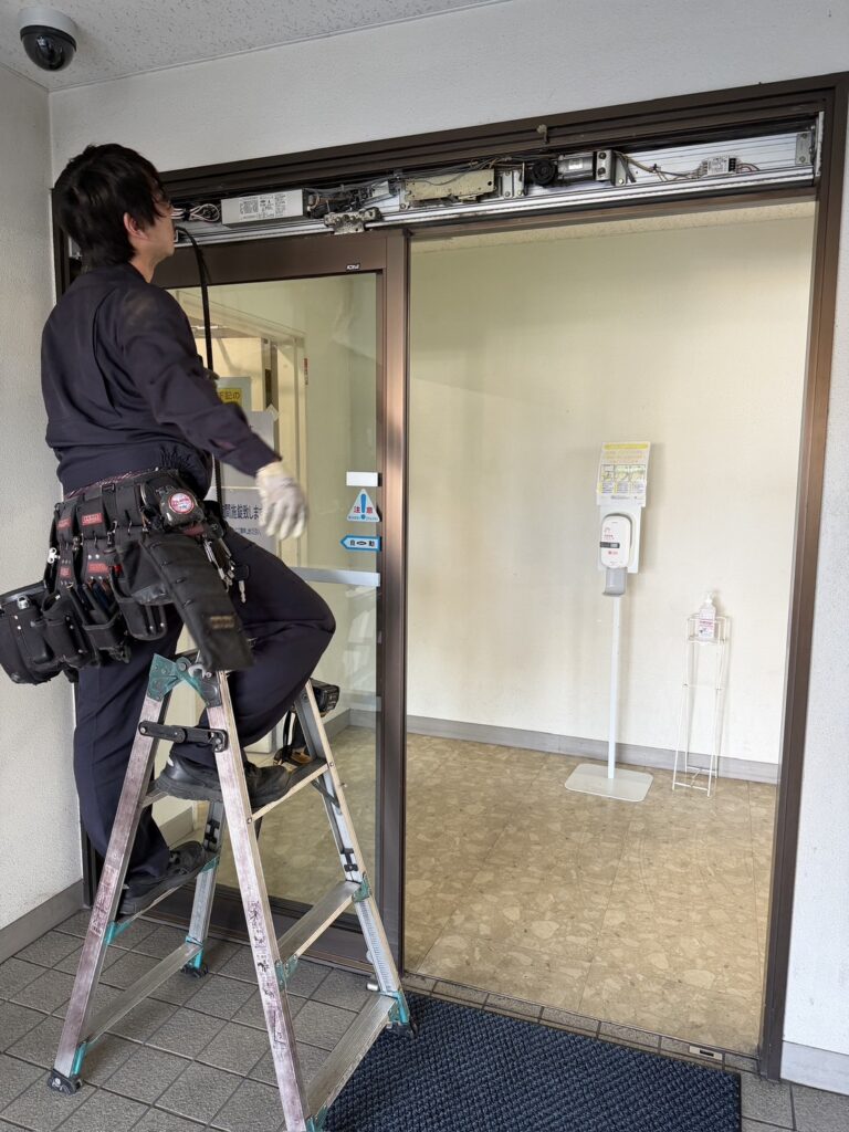 自動ドアセンサー取付工事では、岐阜市内の病院施設での作業でした。