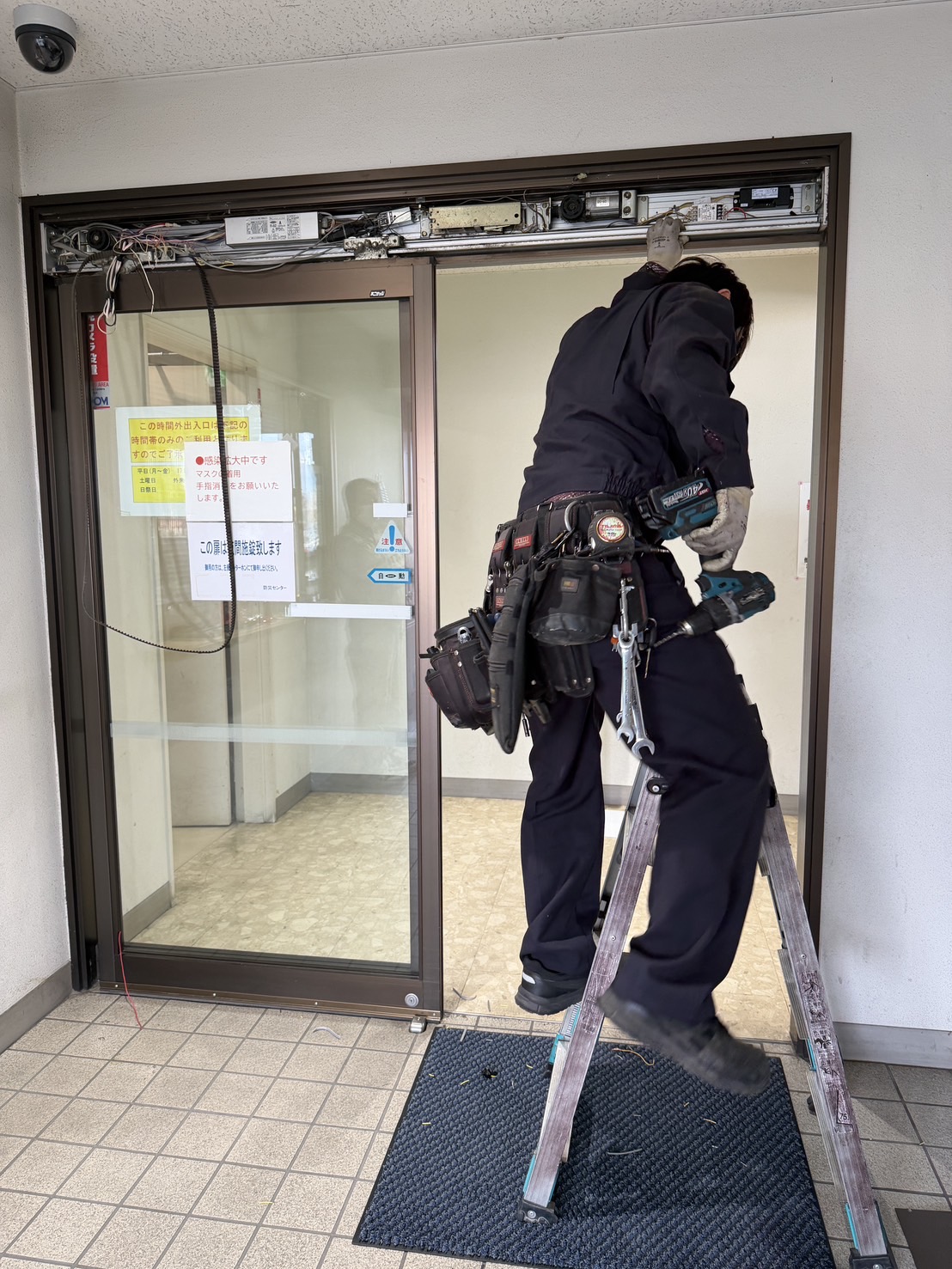 自動ドアセンサー取付工事では、岐阜市内の病院施設での作業でした。