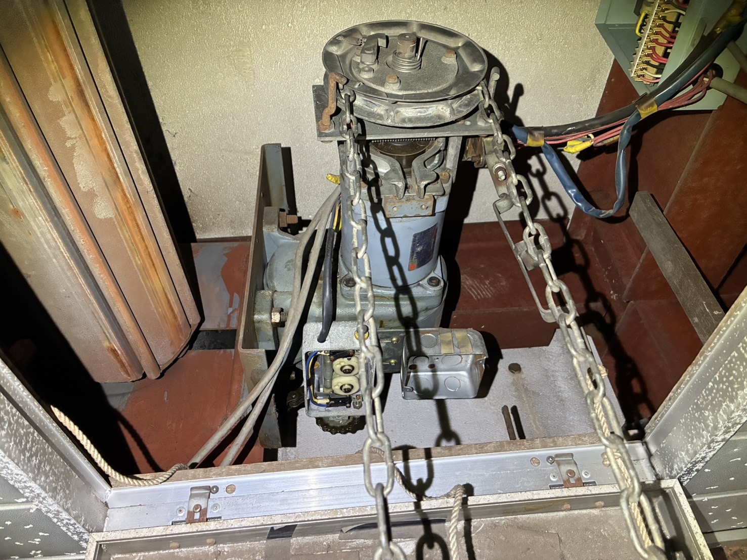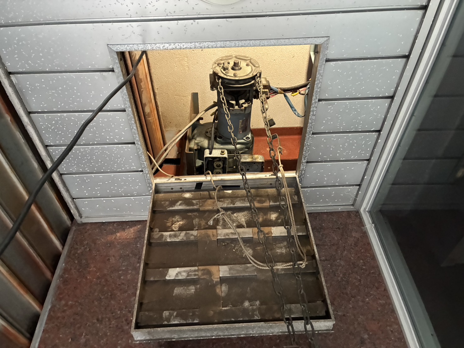 チェーンの交換作業は開閉機を取り外さないとできない為、